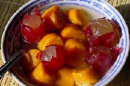 最后一步,锅里加水,上火烧开。然后,往烧开的水里,放入刚才切好的小小面团儿,像煮汤圆一样,用铲子搅一搅,等浮上来的时候,就是好了。很容易熟的,因为,红薯已经是熟的了,就只是要煮熟刚刚和面时候加的那一点糯米粉而已。把煮熟的红薯圆子分别捞到小碗里,拌点白糖或者蜂蜜,加点汤,一碗亮晶晶甜蜜蜜的糖水红薯圆子就好啦,喜欢的话,可以加点切小的水果一起吃。
