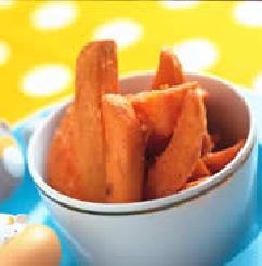 2.热锅,放入炸油预热至160℃,将作法1的蕃薯条放入锅中,以中小火将蕃薯条炸3分钟,炸的时候不时翻动蕃薯条,使其受热均匀,再将蕃薯条捞出,沥干油分,并让蕃薯条冷却一下,均匀沾裹上低筋面粉。