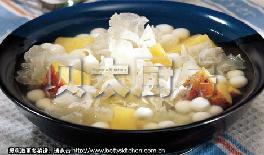 原本是广东家庭里常煲的一款糖水,典型的怀旧滋味。可以聚会前细细煲出来,静静放凉,在欢乐的桌面独处一隅,于是那份甜蜜就像亲情、友谊般隽永朴素、沁人心脾。热量标注:此菜热量为1161千卡。