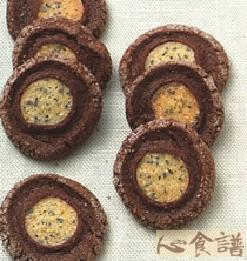 巧克力面煳:225公克,糖粉85公克,蛋55公克,低筋面粉177公克,杏仁粉50公克,可可粉23公克,地瓜面煳:162公克,糖粉47公克,蛋23公克,低筋面粉162公克,杏仁粉47公克,地瓜泥58公克,黑芝麻30公克