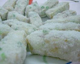 2、把炒鼎洗净,放下水和白糖,水和白糖的比例约(1:2),使用中火,用手勺不停地搅拌,至糖浆浮起大泡,用手勺起一勺糖浆,慢慢倒进鼎中,如观察到勺中全是大泡,而没有液体状的糖浆,便可把经炸好的蕃薯和芋头快速倒入,并用手铲轻快地翻铲,对着蕃薯和芋头吹风,至糖浆在原料外层均匀地凝结成一层白霜般的糖衣即成。