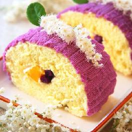 香芒紫薯蛋糕卷(鲜花和蛋糕一同送上的祝福)