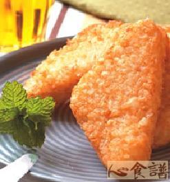 6.取一油锅,热至120℃后转小火,将作法5处理好的薯饼入锅油炸约3分钟,至表面成金黄色即可起锅,沾蛤蜊酱食用风味更佳。