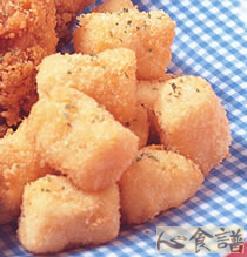 3.锅中倒入足够的油烧热至180℃,放入作法2薯球,以中小火炸约3分钟,并不时翻动薯球使受热均匀,待表面呈金黄色时,捞出沥干油分即可。