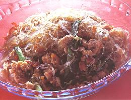 薯粉丝球18扎,虾米2两,青蒜4两,半肥瘦猪肉8两,鱼露1汤匙,胡椒粉适量,上汤11/2杯