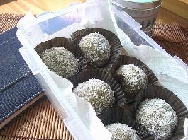 7.手上蘸藕粉,把糯米团分小分,(我分了10个),包上喜欢的馅料,红豆沙,绿豆沙,莲蓉……包好,拿到椰丝盘里滚一头,蘸上椰丝即可(不喜欢椰丝的,可以就抹点藕粉在面上不沾就可以了)。