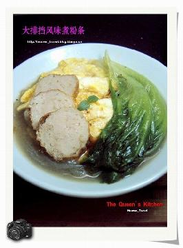 红薯粉条1扎,潮州肉卷半根,蒜,生菜,上汤(或水),大排档调味料,油,麻油,鸡蛋,味事达酱油