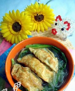 鸡蛋,猪肉,料酒,鸡精,鸡毛菜,盐,姜汁,红薯粉丝,麻油,鲜辣粉