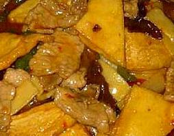 主料:香干300克,甘薯100克,瘦猪肉90克,