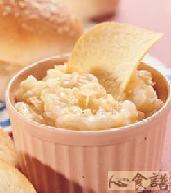 将洋芋片用汤匙压碎,与美乃滋、蜂蜜一起混合搅拌均匀即可。