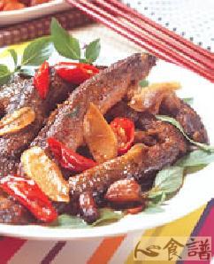 6.加入作法3的泥鳅,以大火拌炒至收汁,再加入九层塔拌炒即可。