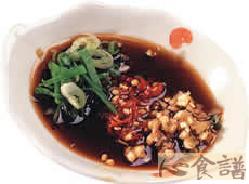 蒜末1大匙,葱花2匙,辣椒末1大匙,酱油1又1/2大匙,香油1/3大匙,细砂糖1/3大匙,冷开水1又1/2大匙