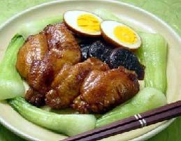 主料:鸡翅8个,蒜1个,姜1小块,干香菇5个,鸡蛋2个,青菜1棵,油2大匙,酒1大匙,酱油2大匙,香醋3大匙,糖2大匙。