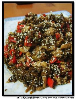 不知道为什么,鸡肉一直给我一种高不可攀的错觉。大概是因为小时候,能喝上一次鸡汤是一件特奢侈的事情,我对鸡肉那可望而不可及的敬畏便由此开始的萌芽,即使到了今天,每喝鸡汤,我都带着点朝圣般庄严的可笑神情。 不过,当这神秘的鸡肉与我熟悉的芽菜搭配在一起的时候,我非常惊喜的发现,这样的“鸡米芽菜”不仅可口下饭,而且亲切无比。绝对是一道最平民化的经典川菜。 有人说,川菜的魅力在于“有味”,这个“味”指的就是能下饭。无论什么菜,能下饭就是好的,这就是川菜的原始魅力。虽然今天的鸡米芽菜做得不算正宗,但美味无穷,而且超级下饭。算是体现了川菜的原始魅力吧。