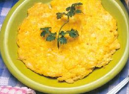 首先,把鸡蛋打入碗中,搅拌均匀,呈橙黄色。然后,加入奶粉(或加其他东西也可),和水,继续搅拌。最后,像平时煎蛋一样,煎一下,熟后即可。