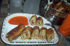 上桌趁热夹起一条“香炸箩蒂卷”