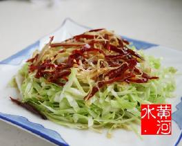包菜又叫卷心菜、球甘蓝,别名圆白菜或洋白菜,还叫莲花白,属于甘蓝的变种,包菜营养相当丰富,含有大量的维生素C,纤维素以及碳水化合物及各种矿物质,除此以外卷心菜内还含有维生素u,维生素u是抗溃疡因子,并具有分解亚硝酸胺的作用。 中医认为经常食用卷心菜能性甘平,无毒,有补髓,利关节,壮筋骨,利五脏,调六腑,清热止痛等功效。包菜新鲜汁液能治疗胃和十二指溃疡,有止痛及促进愈合作用。经常吃包菜对皮肤美容也有一定的功效,能防止皮肤色素沉淀,减少青年人雀斑,延缓老年斑的出现。世界卫生组织推荐的最佳食物中,蔬菜首推为红薯(山芋),山芋含丰富维生素,又是抗癌能手,其次是芦笋、包菜、花椰菜、芹菜、茄子、胡萝卜等,包菜排名第三。 黄河今天上一道很适宜下酒的小菜---炝包菜丝。当然,用来下饭和送粥都不错,呵呵