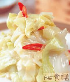 高丽菜300公克,红辣椒1支,蒜头1大颗,辣麻油腐乳20公克,水45㏄,糖1/3小匙,酒15㏄