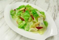 高丽菜120公克,蒜头3颗,干辣椒10公克,红萝卜5公克,盐1/2小匙,鸡粉1小匙
