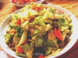 这盘高丽菜口味就是偏甜。(还有在馒头,包子的面粉中放糖的习惯呢。)