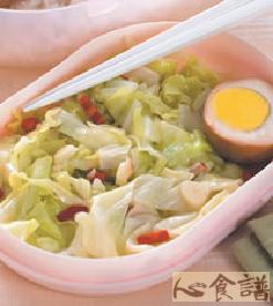 高丽菜100公克,蒜末3公克,辣椒末3公克,盐少许,胡椒粉少许