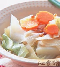 1.高丽菜洗净切块,胡萝卜洗净切片备用。