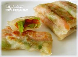 今天做了简易的春卷,用馄饨皮做的.馄饨皮很便宜2元钱一斤.虽然我很崇尚diy,但是馄饨皮还是免了吧.这个的味道很像什锦馅的春卷.