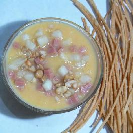 2、再启动加热开关,加热5分钟,把细羹状煮熟盛出。