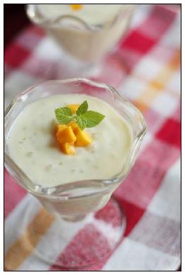 榴莲肉(打成蓉)100g,牛奶125ml+,西米2汤匙,(还可以添加柚子肉和蒟蒻)