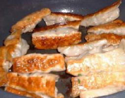 5.锅中倒入油,放入饺子,用猛火煎至微黄,倒入热火煮4分钟左右,再放入油锅中煎熟就可以了。