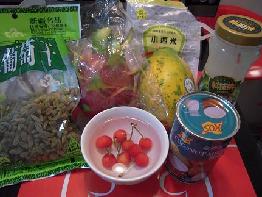 原材料:西米,木瓜,火龙果,樱桃,椰酱,葡萄干,椰果