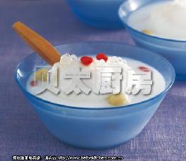 食材: 鸡蛋 4只, 莲子 100g, 西米 50g, 牛奶 500ml, 老姜 2片,调料: 冰糖 15g