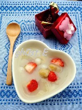 3.煮开小锅水,加入西米、冰糖,水沸后依次放入切块的梨、草莓和香蕉粒,关火即可。