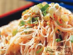 白面线1把,茶油半杯,红萝卜碎3大匙,葱花3大匙,盐1小匙,味精1小匙,糖1小匙,胡椒粉1小匙