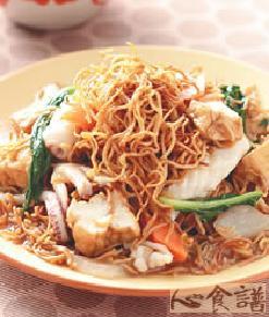 4.将作法3的材料淋至作法2的广东炒面表面即可。