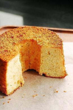 椰浆是一种对发泡蛋白很不友好的材料,面糊拌进蛋白时有一点簌簌的泡沫破灭的声音,烤完的成品比一般的要矮1/4。质感有一点点湿,淡淡的有一点几乎无法分辨的菠萝和椰子味。想要凸显材料的风味,戚风真不是一个好的载体,放了什么,吃起来都是压倒性的鸡蛋味,真使人沮丧。