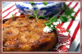 3、如果嫌麻烦,可用这个方法代替焦糖:在模具里先抹上一层黄油,再铺上红糖,码放上菠萝。