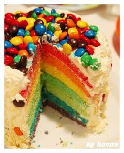 9.蛋糕完成了,上面铺满了超级喜欢的MM巧克力和整颗的榛仁,以及松子。