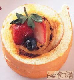 6.将蛋糕体均匀抹上白奶油霜并捲成圆柱形,再将蛋糕中间挖空并挤入克林姆内馅后填平,再依个人厚薄度的喜好切片。