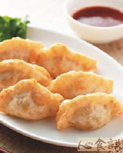 1.热油锅,将水饺放入锅中,以中火炸约3分钟至熟后,捞起沥油摆盘。