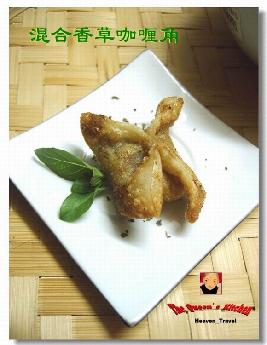 欧芹3-4小条,女王牌香草豉油适量,地中海蒜香香料少许,九层塔少许,滑牛肉300g,猪肉100G,麻油,料酒,砂糖,水,油,生粉,饺子皮