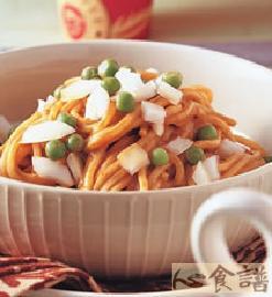4.最后将步骤2的调味料淋在步骤3的油面上拌匀后,再放上步骤3的青豆及洋葱丁即可。