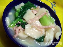 手擀面,鸡毛菜,肉丝,盐,鸡精