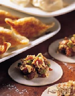 1.)将猪绞肉、葱末、压碎的泡面面条及泡面调味料包全部拌匀即为饺子馅。