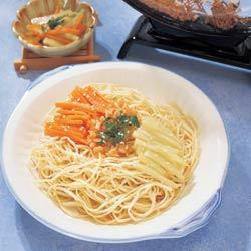炎热的夏季里,做法简单、不肥不腻的冷面倍受欢迎,宴客或家常食用都适宜。此道菜肴富含维生素A、B族、D及磷、钙、镁、钾。