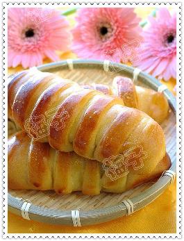 1.150克温水或牛奶加一茶匙酵母粉和50克的糖.5克盐.一起拌溶后加入240克高粉和60克低粉和10克奶粉中.