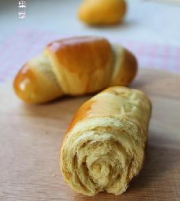 高粉……200g,低粉……50g,芒果泥……100g,糖……25g,黄油……25g,鸡蛋……55g(留少许刷表面),酵母……4g,盐……2g,奶粉……10g