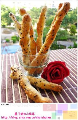 昨天下午,去其他办公室找同事,进屋吓我一跳:一个个嚼着零食,对着电脑荧幕,一脸的满足,瞧这日子过得~~~~~回头冲我来一句:“你来点儿不?”我仔细往桌上一看:苏打饼,小麻花,一口酥,奶糖,果冻。。。。。。还真够丰富的!现在天气凉了,大伙儿下午都来点儿零食吧,让咱这上班族的劳碌的日子过得滋润点儿哈!周末在家做了一大盘迷你面包棍,方子我参考了烦烦的。这个小棍儿似的零食外酥内软,小巧可爱,制作超级简单——无油配方,吃不胖,绝对的健康小食! 我特地带了一袋放办公室,下午没事儿的时候,窝在温暖舒适的椅子里,一边嚼着面包棍,一边上着网,突然觉得,这忙碌的日子也美得冒呢,嘿嘿。。。。。。!