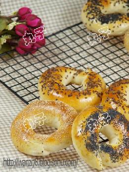 今天的这个就是出自那本书,虽然不是完全一样,但是参考了那本书。我做的时候觉得这个不就是贝果吗?只是少了焯水使它糊化的过程,但是口感上真的查了很多,这个是面包的感觉,软软的。贝果更加有嚼头,吃了这个以后还是觉得贝果的那种更加适合我们家,呵呵。 如果你喜欢软软的,可以做这个试试。