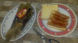 (1人份) 白面包 2片 麻坡乌达乌达 4支 面包油 辣椒酱